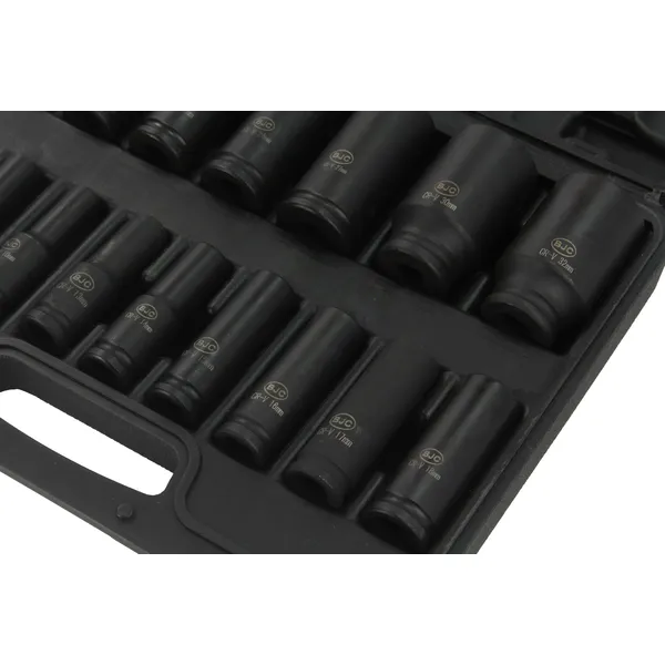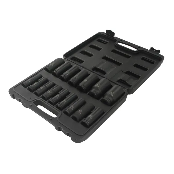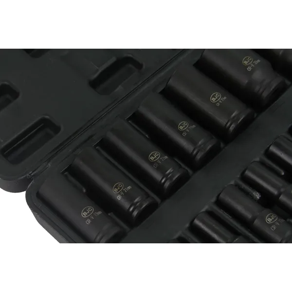 Masszív, műhelybe való ütésálló dugókulcs készlet 1/2″-os meghajtással, amelyet kifejezetten ütvecsavarozókhoz terveztek. A kiváló minőségű acélból készült fejek nagy terhelésnél is megbízhatóan teljesítenek, legyen szó autószerelésről, gumis műhelyről vagy általános szervizmunkákról.