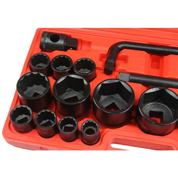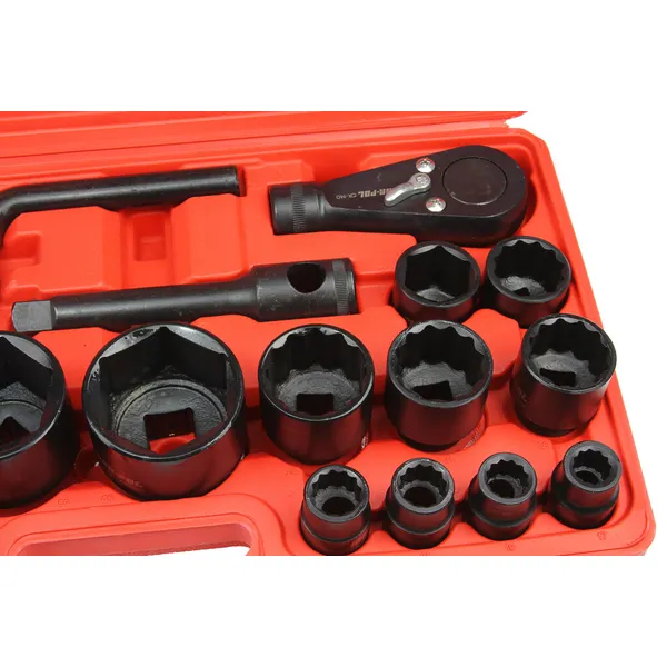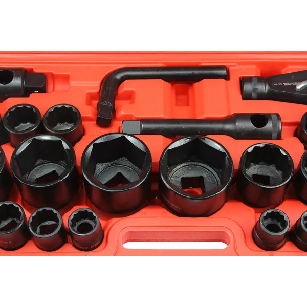 Masszív, nagy terhelésre tervezett 26 részes dugókulcs készlet 3/4″ és 1″ meghajtással, amely megbízható választás otthoni garázsba és professzionális autószerelő műhelybe egyaránt. A strapabíró kivitelnek köszönhetően hosszú távon is stabil társ, és pneumatikus (ütvecsavarozó) kulcsokkal is jól használható.