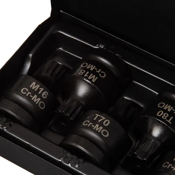 Ha olyan bitkészletet keres, amely műhelyben is helytáll, ez a Torx + spline összeállítás ideális választás a nagy nyomatékú, ütvecsavarozós feladatokhoz.