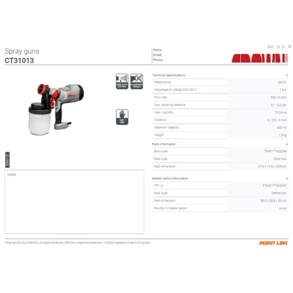 Crown Elektromos festékszóró 400W ipari gép CT31013