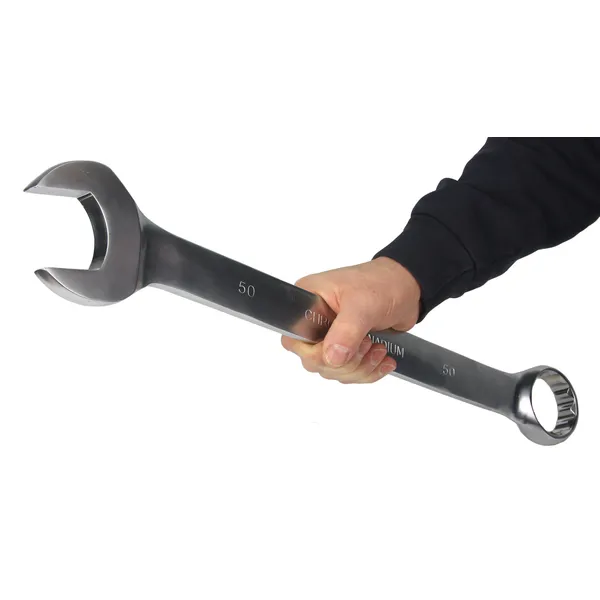 Ez a 34–50 mm-es csillag-villáskulcs készlet megbízható választás nagyobb méretű kötéseknél is, legyen szó otthoni szerelésről vagy professzionális műhelymunkáról. A kulcsok króm-vanádium (CrV) acélból készülnek, esztétikus, polírozott fejjel és tartós kivitelben.