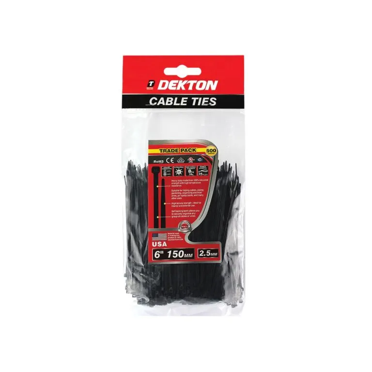 DEKTON 500 PCS 2.5x150MM BLACK CABLE TIES DT70490