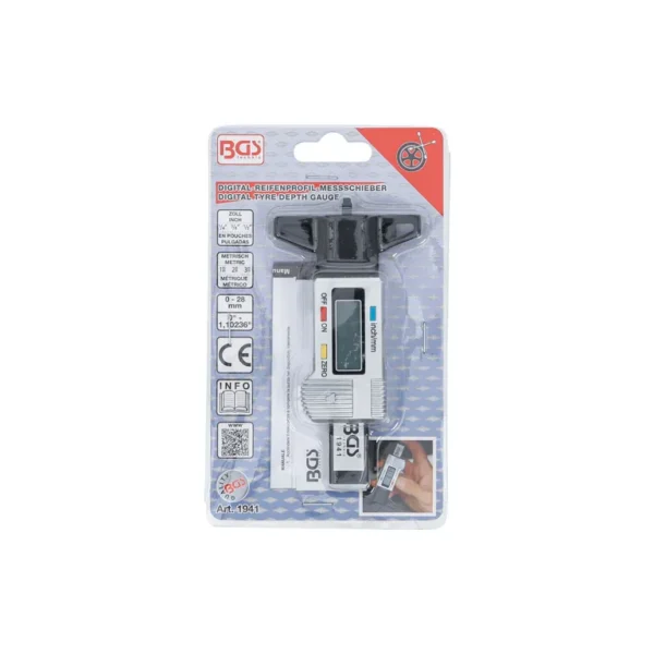 BGS Digitális gumimélység mérő gumi profil mérő gumi mélységmérő 28 mm metrikus colos BGS-1941