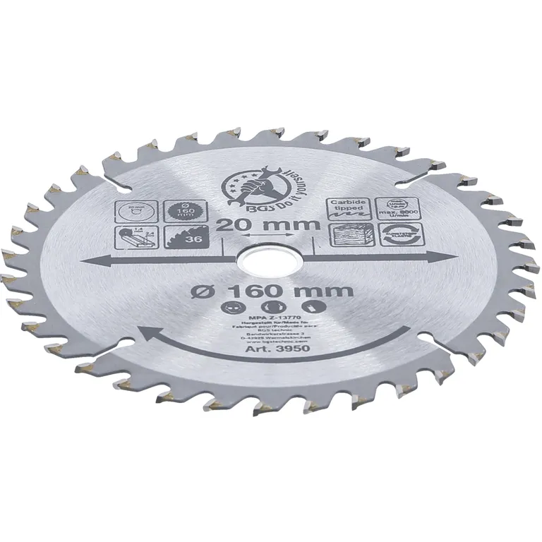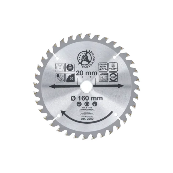 BGS körfűrész tárcsa vágótárcsa keményfémlapkás 160x20mm 36fog BGS-3950