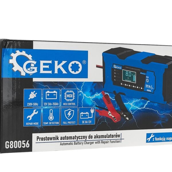 - Az automatikus hőmérséklet-érzékelésnek (téli/nyári üzemmód) és az utolsó üzemmód memória funkciójának köszönhetően a GEKO G80056 töltő kivételesen kényelmes és intuitív módon használható.