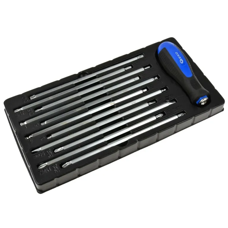Tartalmaz 11 kétoldalas szabványos csavarhúzó cserélheto bitet különféle munkákhoz.