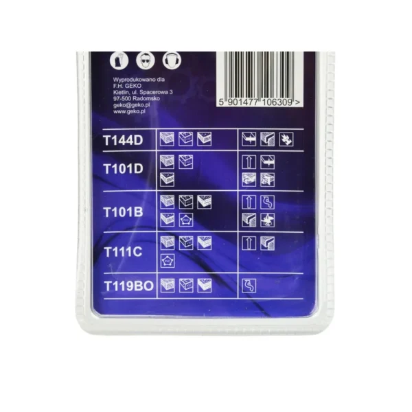 • 2x T 101 B Clean for Wood – egyenes, finom vágásokhoz lágyfában, asztaloslapban és rétegelt lemezben 3-30 mm vastagságig, valamint építőanyagban és műanyagban <30 mm vastagságig. A vágás nem kell, hogy az anyag szélétől induljon.