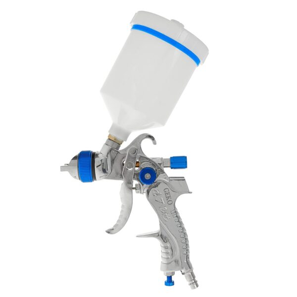 • GEKO festékszóró pisztoly HVLP mini 125 ml, 0,8 mm, műanyag tartály 1/4" nyomásszabályzó G03122