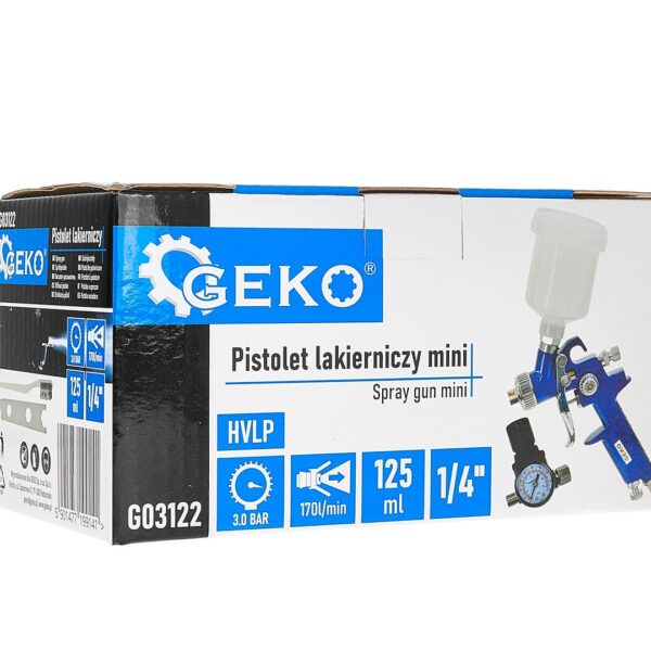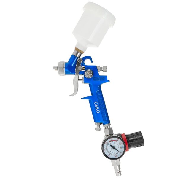 • GEKO festékszóró pisztoly HVLP mini 125 ml, 0,8 mm, műanyag tartály 1/4" nyomásszabályzó G03122