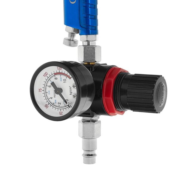 Ez a modell 0,8 mm-es fúvókával és nyomásmérővel ellátott nyomásszabályozóval van felszerelve, amely lehetővé teszi a működési paraméterek teljes körű szabályozását közvetlenül a pisztolynál.