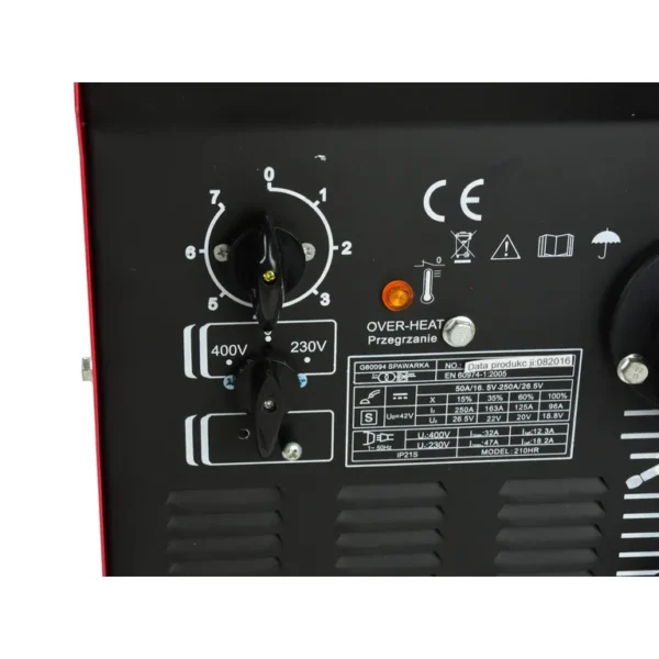 Hegesztőáram tartomány: 80A – 250A; 18,8V – 26,5V