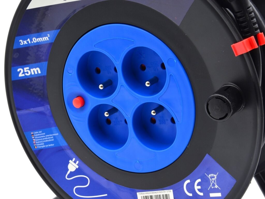 A minőségi tekercselődob hosszabbító kábellel ideális eszköz az otthoni vagy kerti elektromos berendezések csatlakoztatásához. A dob műanyagból készült, a szerkezet fém.
