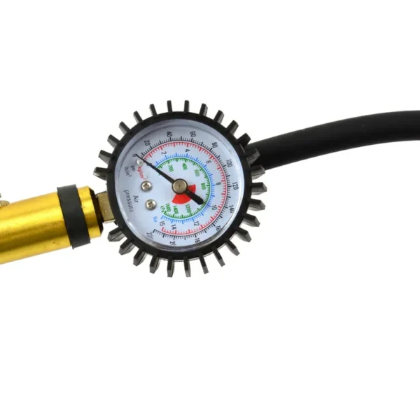 Professzionális pneumatikus pisztoly nyomásmérővel – autók és teherautók kerekek fúvásához. Nagyméretű manométerrel, gumitömítéssel ellátva, amely megvédi az ütésektől. Mérési skála két egységben – Psi és Bar.
