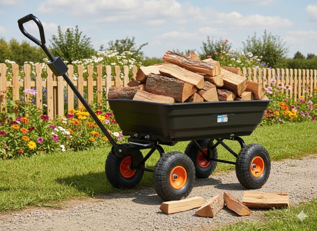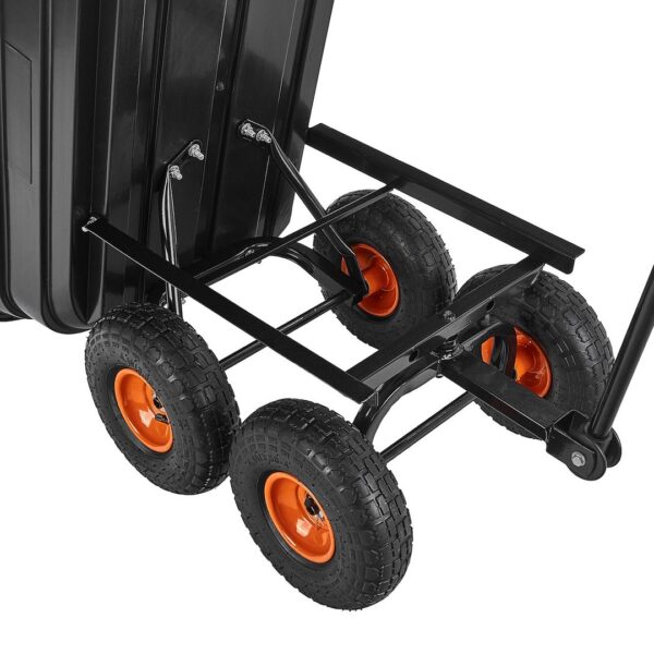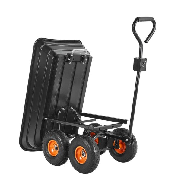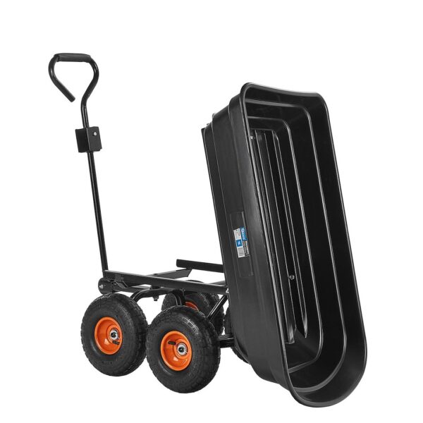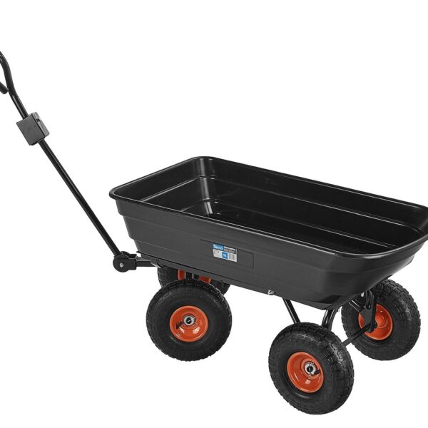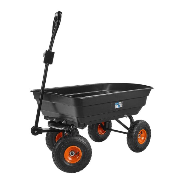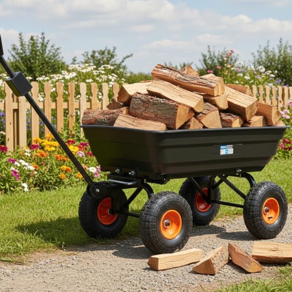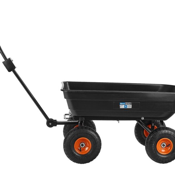 Ez a praktikus és masszív, 75 literes kerti kocsi tökéletes megoldás a mindennapi házimunkákhoz. Billenő funkciójának és felfújható, forgó kerekeinek köszönhetően könnyedén szállíthat vele földet, leveleket, növényeket, műtrágyákat és egyéb anyagokat a kertben, építkezéseken vagy a gazdaságban.