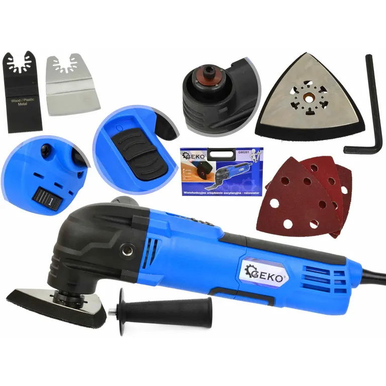 A készülék ideális megoldás a különböző felújítási és befejező munkákhoz. Tökéletes különböző anyagok vágásához, csiszolásához, polírozásához és kaparásához. A 220 W-os teljesítményű elektromos motorral és a fordulatszám-szabályozóval ellátott multiszerszám.