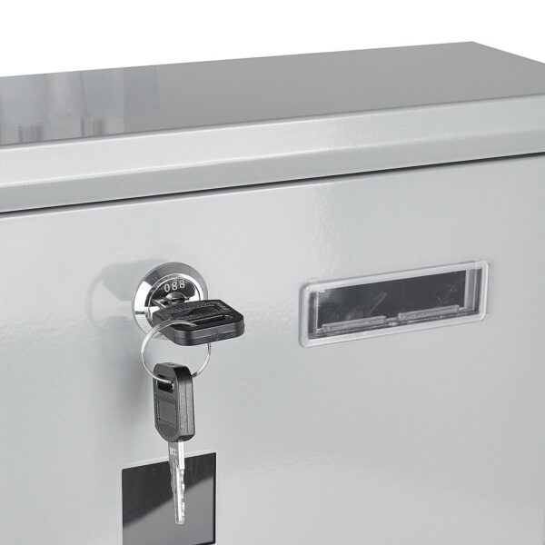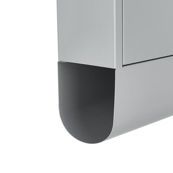 Ez a modern, 34 x 30,7 x 10 cm méretű postaláda tökéletes megoldás azok számára, akik értékelik az eleganciát, a tartósságot és levelezésük biztonságát. Tömör, matt fekete porszórt acélból készült, tökéletesen kiegészíti a modern homlokzatokat és bejárati ajtókat. Az ajtó finom üvegezése modern megjelenést kölcsönöz, és lehetővé teszi, hogy gyorsan ellenőrizhesse, hogy a levelek benne vannak-e.