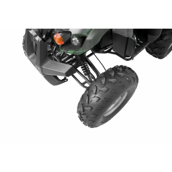 Az Quad első dobfékekkel és hátsó tárcsafékekkel van felszerelve . Mindkét fékkar lenyomott helyzetben rögzíthető, ami hasznos például lejtőn parkoláskor. A motor a hátsó felfüggesztett tengelyre van felszerelve, a motorról a tengelyre történő átvitel zárt sebességváltóval történik. Van egy redukció is , amelyet egy kar vezérel a jobb oldalon a kormány alatt. Az első kerekek külön rugós felfüggesztésű karokon vannak. A kerekekre nagyméretű, durva futófelület-mintázatú abroncsok kerültek, így a terepen is tökéletes tapadást biztosítanak. A kormányra digitális fordulatszámmérő van felszerelve. A kormány alatt, ahol általában az üzemanyagtartály van, van egy akkumulátor töltöttségjelző. A gép első és hátsó tartókkal van felszerelve.