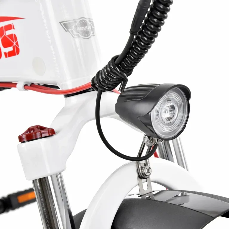 A fényszóró nagy fényerejű LED-ből áll. A fényszóró akkumulátorról működik, de a LED-ek használatának köszönhetően minimális energiát fogyaszt. Az ülés alatt egy piros hátsó lámpa található, amely saját beépített akkumulátorral működik. A kerékpárt SHIMANO váltóval és hétfokozatú kazettával (ún. hétkerekűvel) szerelték fel . Az első és a hátsó kerekeket TEKTRO ARIES tárcsafékek fékezik. Az első villa teleszkópos, amit minden bizonnyal értékelni fog, ha átkel a csatornafedeleken és az utakon gyakran elhanyagolt kátyúkon. A HECHT COMPOS sárvédőkkel és csomagtartóval is fel van szerelve. A kerékpár össztömege az akkumulátorral együtt 26 kg.