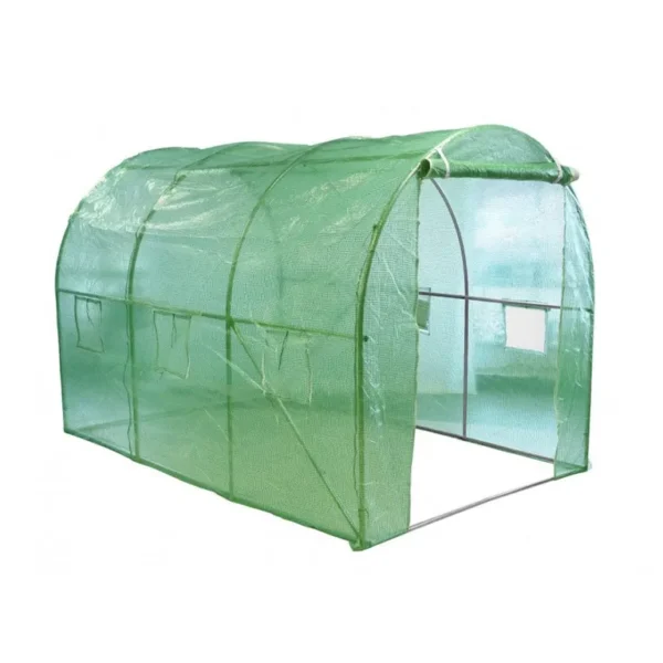 Tágas fólia, melynek kerete fémprofilból készült. Az elülső fal egy nagy bejárati ablakkal van ellátva, mely hőfokszabályozásra is használható. A fóliasátor oldalain 6 ablak is található a hőmérséklet szabályozására. A fóliás növény már áprilisban felhasználható saláták, káposzta, fehérrépa, eper és egyéb zöldségek termesztésére. Méretei miatt azonban különösen ajánljuk paradicsom vagy kúszónövény termesztésére.