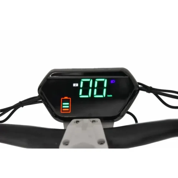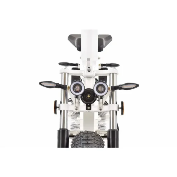 A robogó ragadozó és vonzó megjelenése nem csak a tinédzsereket vonzza majd. A 3000 W-os villanymotor mozgékonyságot és erőt ad a robogónak. Nagy forgalomban könnyen keveredhetsz vele, még meredek dombon felhajtva sem kap el levegőt. A széles, durva mintázatú, 145/70-6″-os gumiabroncsok lehetővé teszik a burkolatlan terepen való haladást. A kerekek tárcsafékkel vannak felszerelve. A robogó pár első LED-es fényszóróval, LED-es hátsó lámpával és LED-es irányjelzőkkel van felszerelve. A kormány nagyméretű LCD-panel uralja, amelyen minden fontos információ jól látható.