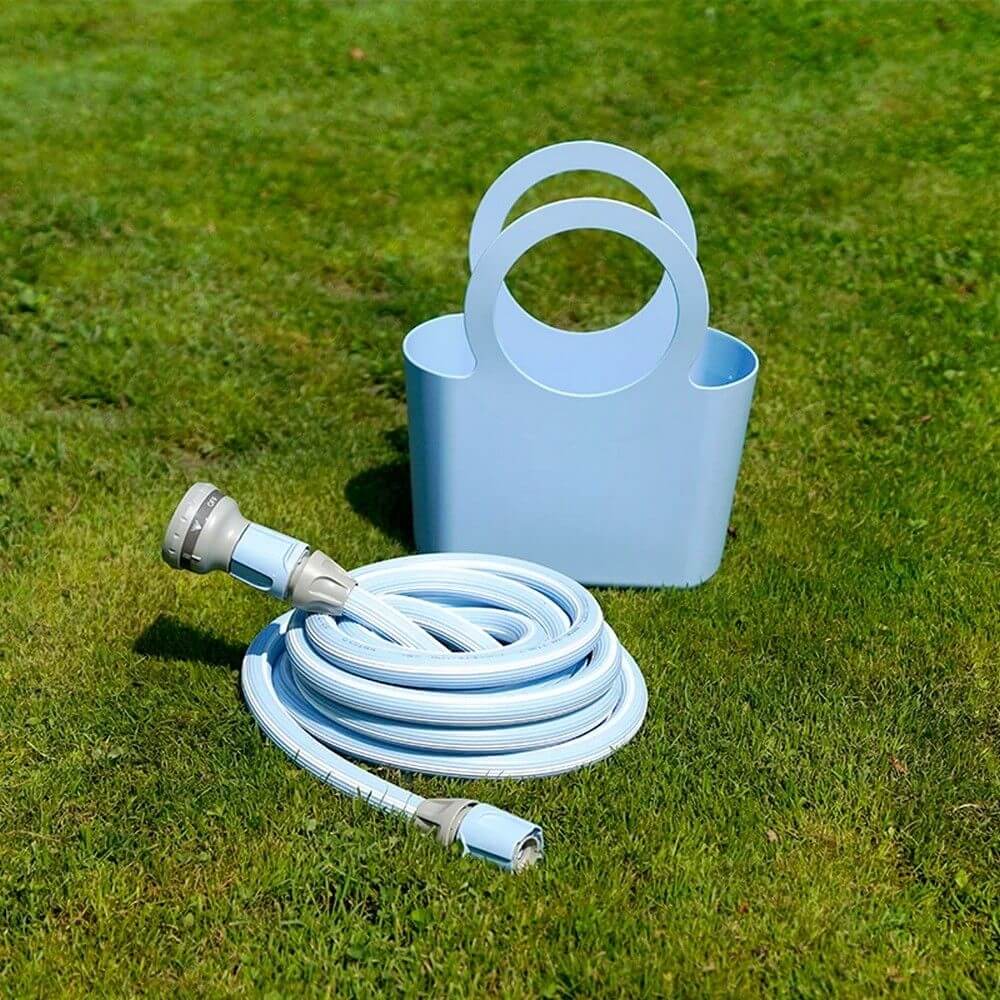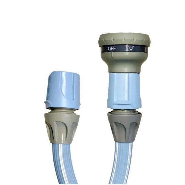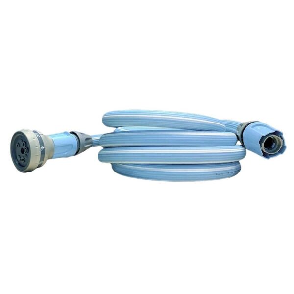 • Ez a kompakt, nagyon könnyű tömlőkészlet hordtáskában tartalmaz egy 10-méterre megnyúló 5/8″-os tömlőt két hagyományos rendszerű gyorscsatlakozóval, valamint egy 8 funkciós elzárható szórófejet.