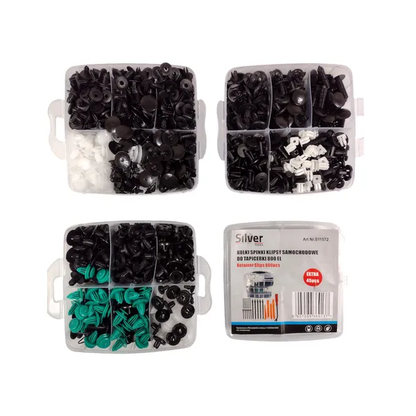 Válassza ezt a komplett szettet, ha gyors, költséghatékony és rendezett megoldást keres kárpit- és burkolatrögzítésekhez – a különböző méreteknek köszönhetően mindig kéznél lesz a megfelelő patent.
