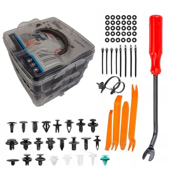 Legyen szó autókárpit, ajtókárpit vagy belső burkolati elemek rögzítéséről, ezzel a 24 féle méretet tartalmazó kárpitrögzítő patent készlettel gyorsan és esztétikusan pótolhatja a hiányzó vagy eltört rögzítőket. A bőséges válogatás és a mellékelt szerszámok segítségével a munka kényelmesebb, a végeredmény pedig stabilabb és megbízhatóbb.
