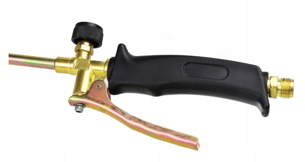 Gombos fogantyú a gázáramlás szabályozására. A tartós műanyagot, amelyből készült, a mechanikai sérülésekkel és a magas hőmérséklettel szembeni nagyfokú ellenállás jellemzi. A fáklya ideális a lakatos-, gépészeti, hegesztő- és tetőfedő műhelyekben stb. történő használatra.