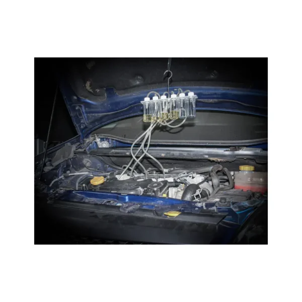• 6 műanyag lombik, 6 mérőpohár egyenként 70 cm-es csatlakozótömlővel, horoggal ellátott alumínium rúdra szerelve