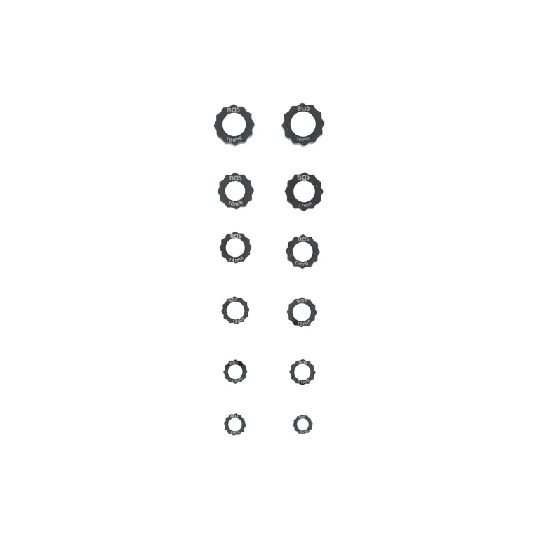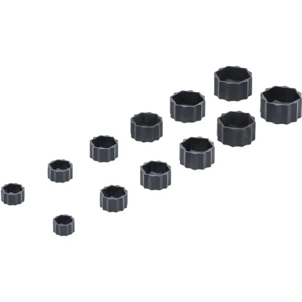 • 12 adaptersapkát tartalmaz a következő méretekben: 8 – 9 – 10 – 11 – 12 – 13 – 14 – 15 – 16 – 17 – 18 – 19 mm