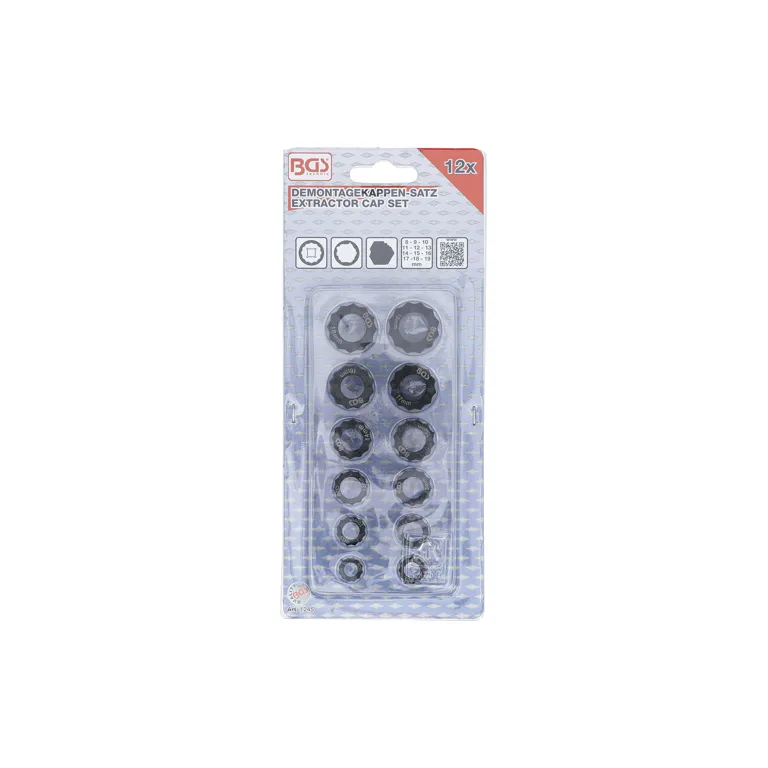 BGS Leszerelő kupak készlet sérült hatlapfejű csavarokhoz és hatlapú anyákhoz _ 12 darabos BGS-1245
