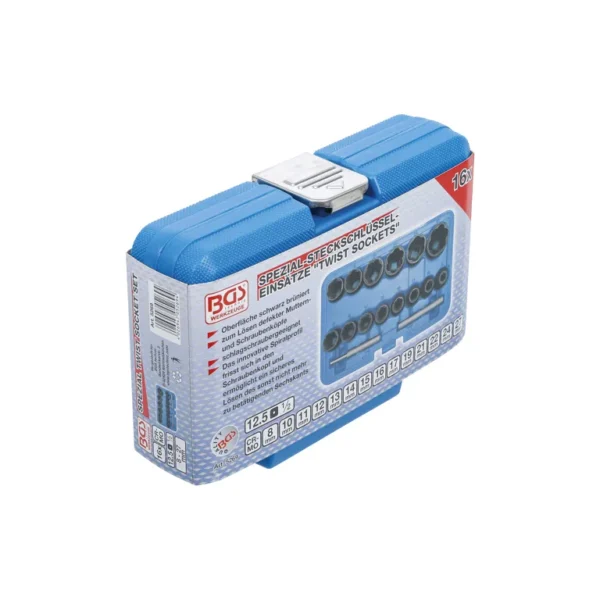 • Speciális dugókulcsbetétek/csavarkiszedő, 12,5 mm (1/2″): Kulcsnyílás: 8 – 10 – 11 – 12 – 13 – 14 – 15 – 16 – 17 – 19 – 21 – 22 – 24 – 27