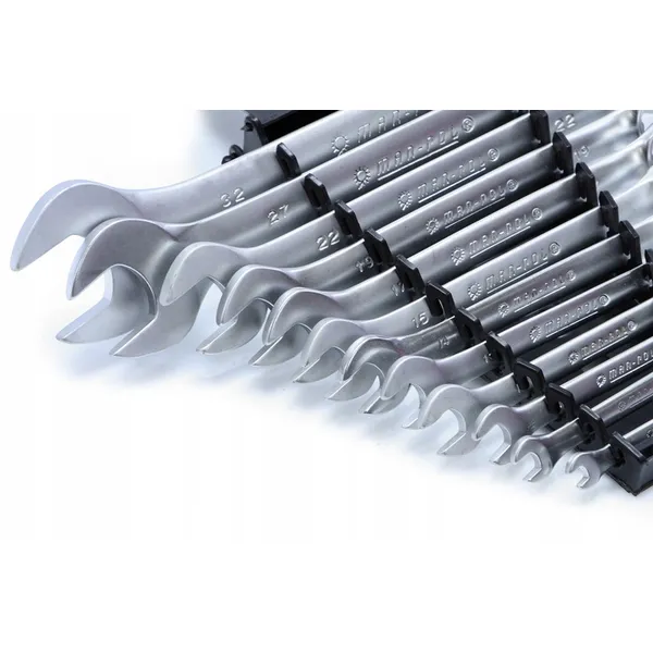 A Mar-Pol 12 darabos csillag-villáskulcs készlet megbízható választás műhelybe és otthoni szereléshez is. A króm-vanádium (CrV) acél nagy terhelés mellett is tartósságot biztosít, a csillag- és villás kialakítás pedig gyors, stabil munkavégzést tesz lehetővé.