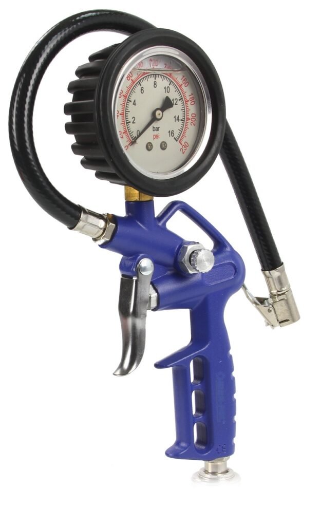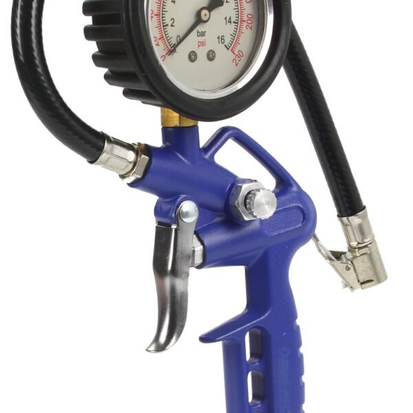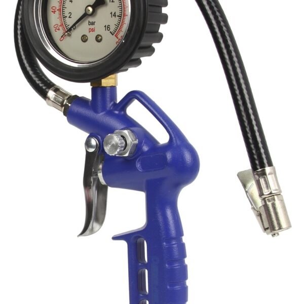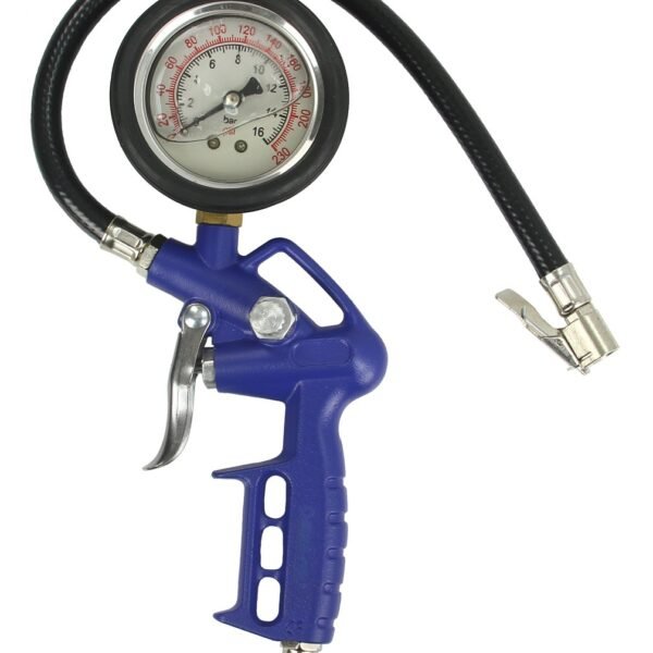 • Ez a pneumatikus gumiabroncs-felfújó pisztoly átlátszó, fekete és piros nyomásmérővel rendelkezik, max. 16 bar / 230 psi.