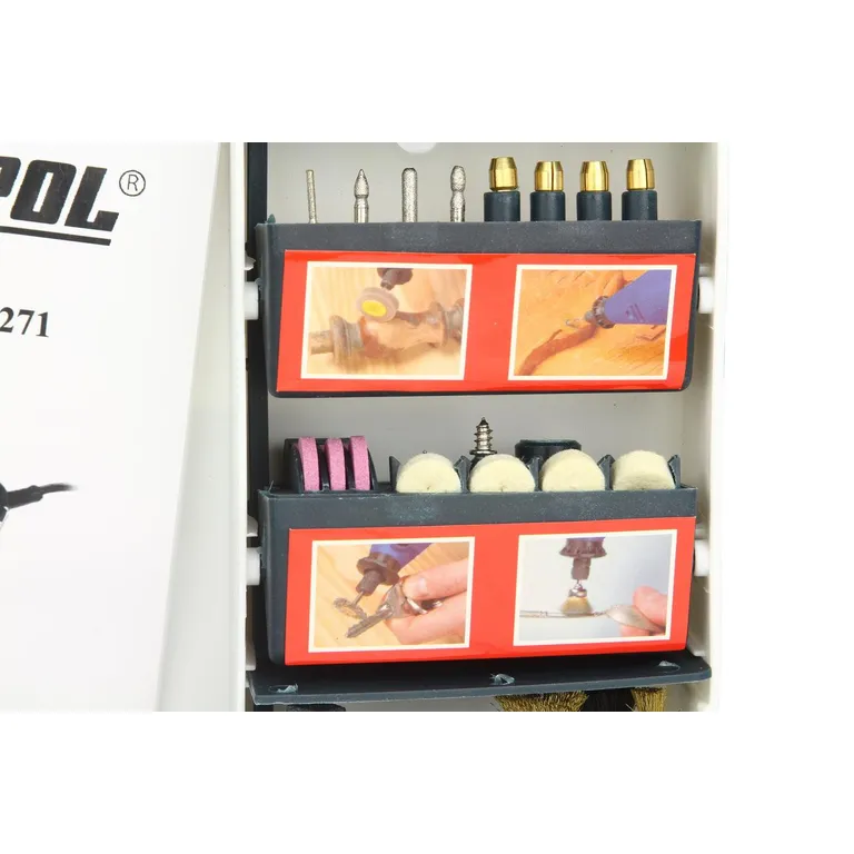 Mar-Pol Mini köszörű készlet gravírozó szett ostorköszörű készlet 270W 300 db-os M22271