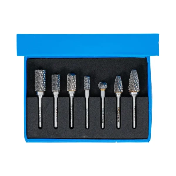 • a következő marófejeket tartalmazza: 1 golyómaró, 2 kúpmaró, 2 hengeres maró, 2 hengeres maró gömbfejjel