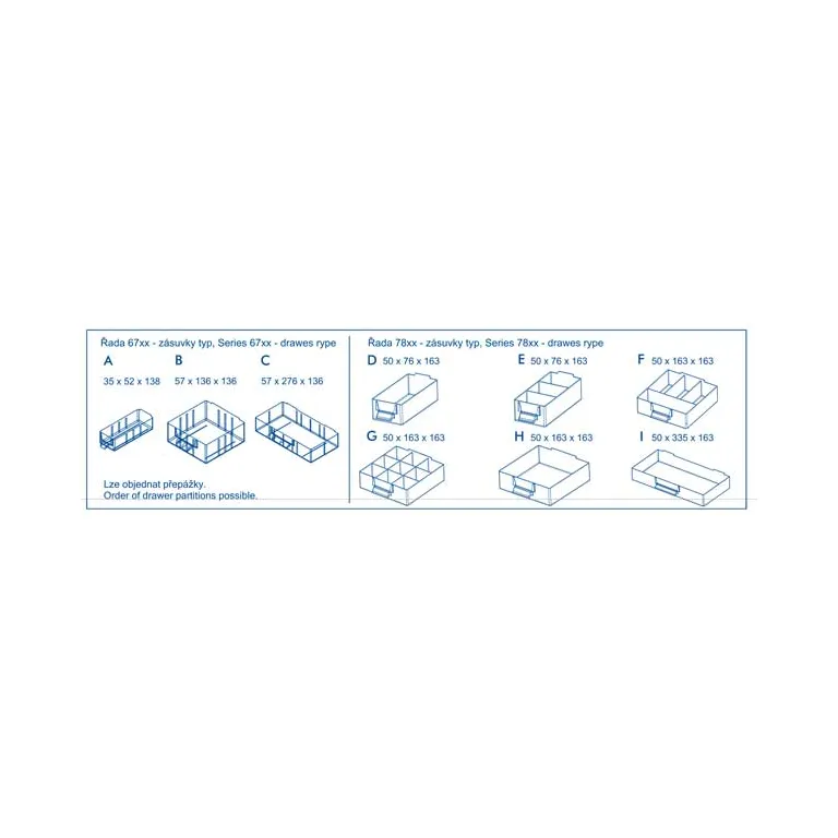 12 db „D” jelű sima és 12 db „E” jelű osztott fiók