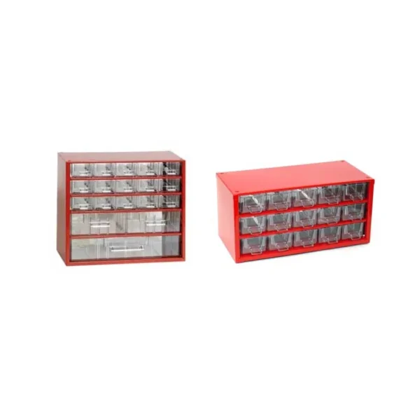 Mars műanyag szekrény fiókos tároló szerszámtároló szett 18+15 fiók fém piros 6796C