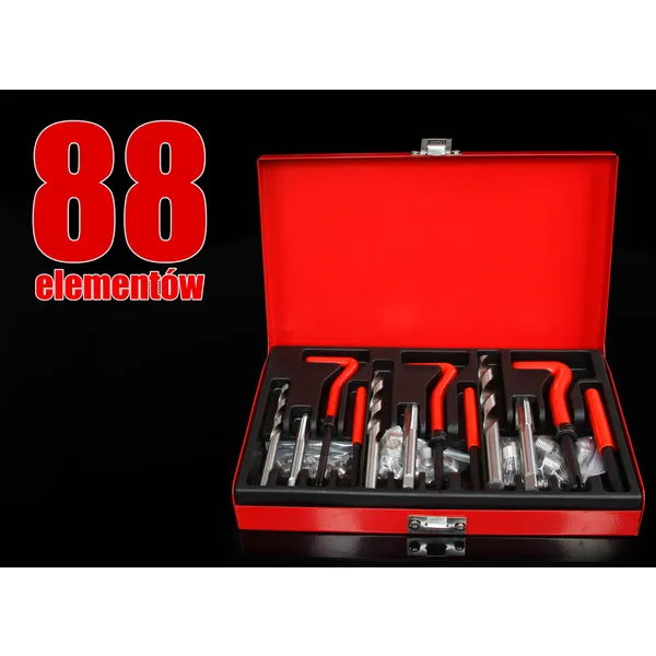 Állítsa helyre gyorsan és tartósan a sérült meneteket ezzel a 88 részes menetjavító készlettel! A leggyakoribb méretekhez (M6, M8, M10) készült készlet ideális autós, gépészeti és általános műhelyfelhasználásra. A pontosan vágó, egyfokozatú menetfúrók és a rozsdamentes acél spirálbetétek megbízható, erős menetet biztosítanak.