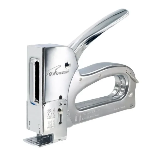 Profesionální ruční sponkovačka na sponky typu 530 a 581 do délky 12 mm. Kombinovaná sponkovačka designovaná pro profesionály s vyváženým klasickým kovovým tělem, robustní, odolné a pevné nářadí. Ideální pro přibíjení látky, čalounění, popruhů, lišt, štítků, rámování, drobné domácí práce.