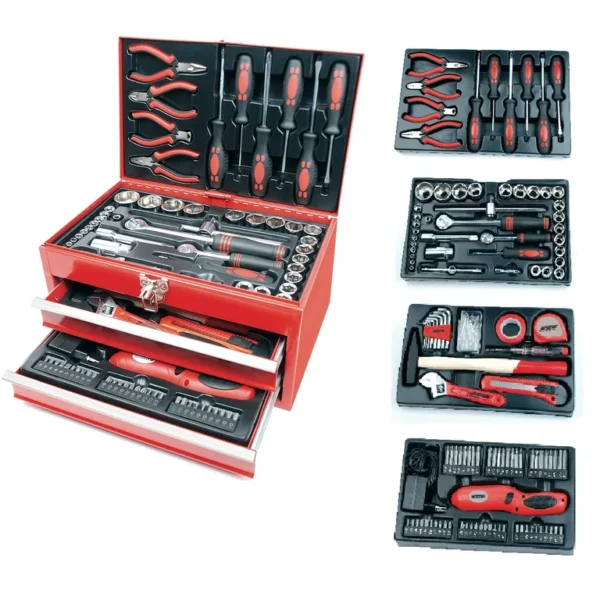 A készlet különböző méretű, ergonómiailag kialakított szerszámok sokaságát tartalmazza. Professzionális hőkezelt króm-vanádium acélból készült, így ez a készlet rendkívül erős és tartós. Hordozó ládájuknak köszönhetően ezek a szerszámok könnyen szállíthatóak és nem foglalnak sok helyet.