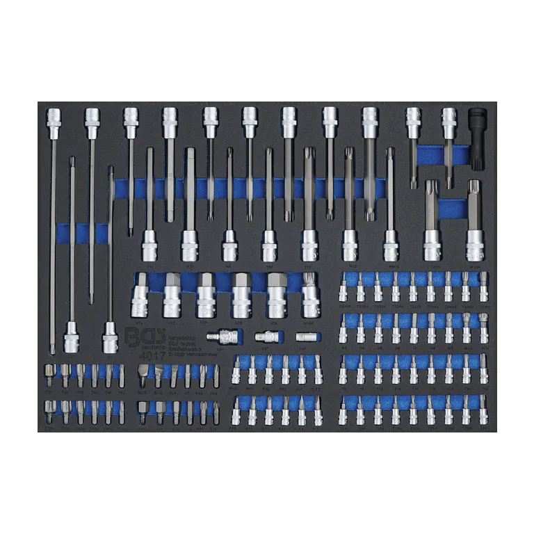 - T-profil (Torx): T8 – T9 – T10 – T15 – T20 – T25 – T27 – T30 – T40