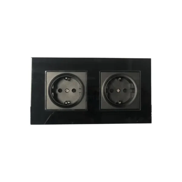 V-TAC EU Kettős Konnektor 16A üveg panel fekete színű – 8401
