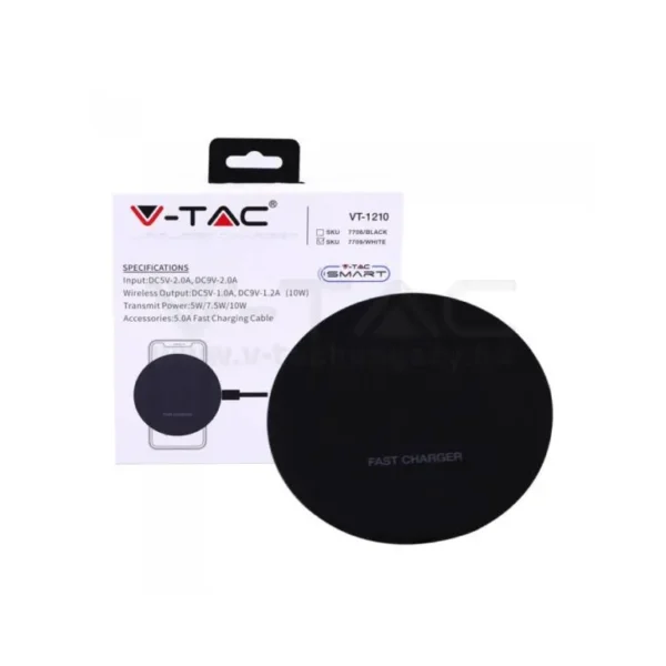 V-TAC VEZETÉK NÉLKÜLI GYORSTÖLTŐ 5A – fekete – 7708