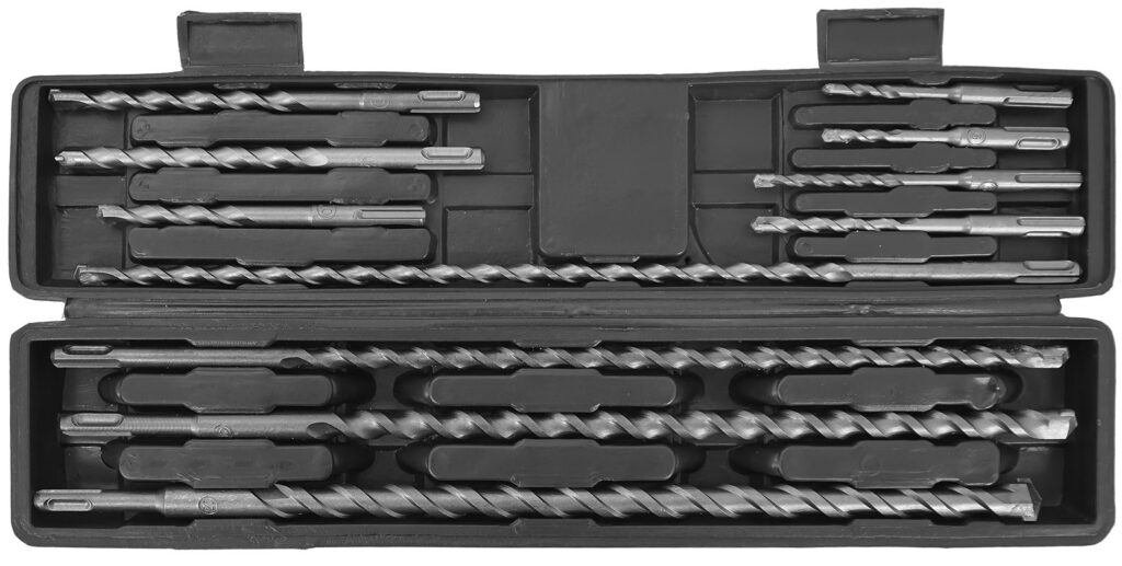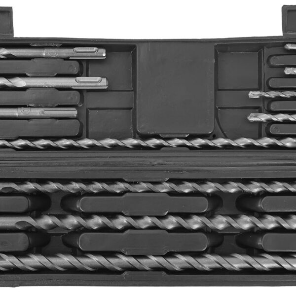 11 darabos SDS+ betonfúró készlet. A fúrófejek kiváló minőségű ötvözött acélból készültek, és keményfém (Widia) hegyekkel vannak ellátva, amelyek tartósságot, precizitást és gyors fúrást biztosítanak. A spirális hornyok ergonomikus alakja hatékony fúrt anyag eltávolítást biztosít, csökkenti a szerszám terhelését és javítja a munka kényelmét. A teljes készlet egy praktikus, masszív hordtáskában található a könnyű tárolás és szállítás érdekében.