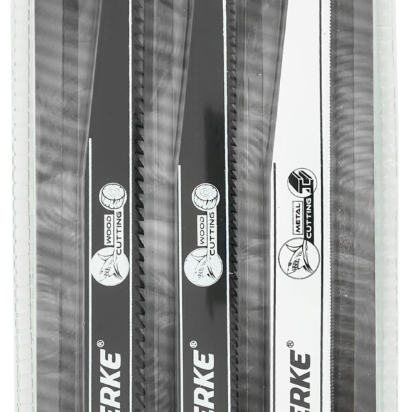Professzionális VERKE szúrófűrészlap készlet, különféle vágási feladatokhoz tervezve. A készlet 9 darab 200 mm hosszú fűrészlapot tartalmaz, amelyek tökéletesek otthoni és műhelyi használatra egyaránt.