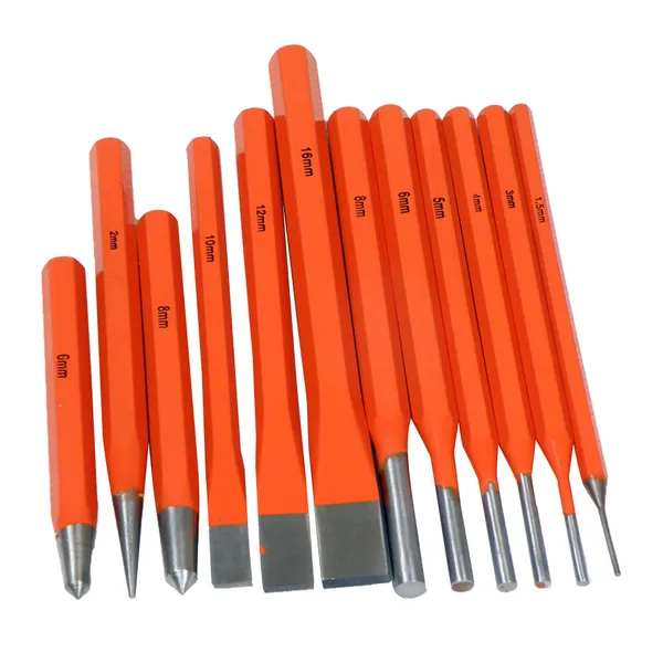 • Elmax 12 db-os lyukasztó és kiütő készlet – precíz fémmegmunkáláshoz S10637