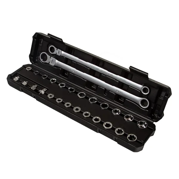 • Hajlított racsnis csillagkulcs készlet 27 db, hosszú, Surface Drive – M58595