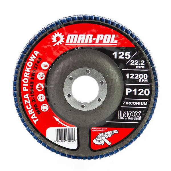 • 125 mm-es lamellás csiszolótárcsa P120 Inoxhoz – 22,2 mm – M07985
