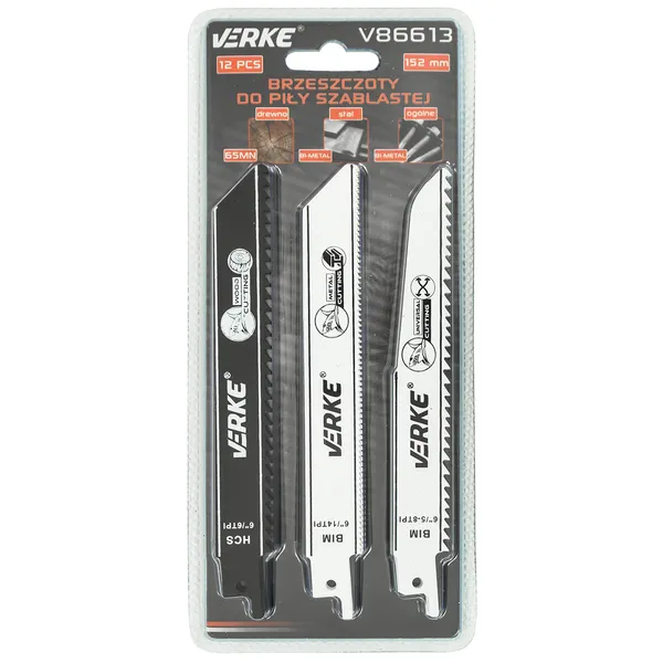 • VERKE orrfűrészlap készlet 152 mm – 12 db (fa/fém/univerzális) – V86613